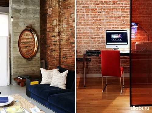 В каком стиле используется отделка декоративным кирпичом? В интерьере лофтов – промышленных помещений, ставших жилищем, – кирпичные поверхности занимают доминирующее положение. Если стена изначально сложена из кирпича, ее достаточно очистить от грязи и пыли строительными растворами, затереть швы и покрыть лаком, иначе поверхность будет крошиться. Ради стилистически верной «обшарпанности» можно кое-где нанести штукатурку грубой фактуры или тонкий слой краски грубыми мазками.