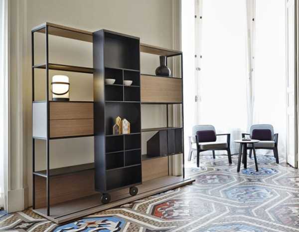 ΠΡΠ΅Π½Ρ ΡΠ΄Π°ΡΠ½ΡΠΌ ΡΠ΅ΡΠ΅Π½ΠΈΠ΅ΠΌ Π·ΠΎΠ½ΠΈΡΠΎΠ²Π°Π½ΠΈΡ ΠΏΡΠΎΡΡΡΠ°Π½ΡΡΠ²Π° ΡΠ²Π»ΡΠ΅ΡΡΡ ΠΏΠ΅ΡΠ΅Π³ΠΎΡΠΎΠ΄ΠΊΠ°, Π²ΡΠΏΠΎΠ»Π½Π΅Π½Π½Π°Ρ Π² ΡΠΎΡΠΌΠ΅ ΡΡΠ΅Π»Π»Π°ΠΆΠ°, ΠΊΠΎΡΠΎΡΠ°Ρ Π½Π΅ ΡΠΎΠ»ΡΠΊΠΎ Π΄ΠΎΠ±Π°Π²ΠΈΡ ΡΠΎΠ²ΡΠ΅ΠΌΠ΅Π½Π½ΡΠ΅ Π½ΠΎΡΠΊΠΈ ΡΡΠΈΠ»Ρ ΠΈΠ½ΡΠ΅ΡΡΠ΅ΡΠ°, Π° ΠΈ ΡΠ΄Π΅Π»Π°Π΅Ρ ΠΏΠΎΠΌΠ΅ΡΠ΅Π½ΠΈΠ΅ ΡΡΡΠ½Π΅Π΅, ΠΏΠΎΠ·Π²ΠΎΠ»ΠΈΡ ΡΠ°Π·ΠΌΠ΅ΡΡΠΈΡΡ Π²ΡΠ΅Π²ΠΎΠ·ΠΌΠΎΠΆΠ½ΡΠ΅ ΡΡΠ²Π΅Π½ΠΈΡΡ ΠΈ Π΄ΡΡΠ³ΠΈΠ΅ ΠΌΠ΅Π»ΠΎΡΠΈ, ΡΡΠ°ΡΡΡΡΠΊΠΈ, ΡΠ²Π΅ΡΡ, ΠΊΠ½ΠΈΠ³ΠΈ. ΠΡΠ΅Π½Ρ ΠΈΠ·ΡΡΠΊΠ°Π½Π½ΠΎ Π²ΡΠ³Π»ΡΠ΄ΡΡ ΠΏΠ΅ΡΠ΅Π³ΠΎΡΠΎΠ΄ΠΊΠΈ, Π²Π½ΡΡΡΠΈ ΠΊΠΎΡΠΎΡΡΡ ΡΠ°Π·ΠΌΠ΅ΡΠ΅Π½ Π°ΠΊΠ²Π°ΡΠΈΡΠΌ, ΠΊΠΎΡΠΎΡΡΠΉ, Π±ΡΠ΄ΡΡΠΈ ΠΎΡΠΊΡΡΡΡΠΌ ΡΠΎ Π²ΡΠ΅Ρ ΡΡΠΎΡΠΎΠ½, ΡΠΊΡΠ°ΡΠ°Π΅Ρ ΠΊΠ°ΠΆΠ΄ΡΡ ΠΈΠ· Π·ΠΎΠ½, ΡΠΎΡ ΡΠ°Π½ΡΡ ΠΏΡΠΈ ΡΡΠΎΠΌ ΠΈΡ ΡΠ°Π·Π΄Π΅Π»Π΅Π½Π½ΠΎΡΡΡ.