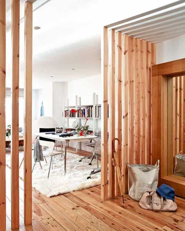 ΠΠ°Π½Π½ΡΠΉ Π²ΠΈΠ΄ ΠΌΠ°ΡΠ΅ΡΠΈΠ°Π»Π° ΠΏΠΎΠ΄ΠΎΠΉΠ΄Π΅Ρ ΠΏΠΎΠ΄ Π»ΡΠ±ΠΎΠΉ ΠΈΠ½ΡΠ΅ΡΡΠ΅Ρ, ΠΈ Π±ΡΠ΄Π΅Ρ ΡΠΎΠ·Π΄Π°Π²Π°ΡΡ ΠΎΡΠΎΠ±ΡΡ ΠΏΡΠΈΠ²Π»Π΅ΠΊΠ°ΡΠ΅Π»ΡΠ½ΠΎΡΡΡ ΠΏΠΎΠΌΠ΅ΡΠ΅Π½ΠΈΡ. ΠΠ΅ΡΠ΅Π³ΠΎΡΠΎΠ΄ΠΊΠΈ, ΠΎΡΠ΄Π΅Π»ΡΡΡΠΈΠ΅ ΠΊΠΎΠΌΠ½Π°ΡΡ, Π²ΡΠΏΠΎΠ»Π½Π΅Π½Ρ Π² Π²ΠΈΠ΄Π΅ Π³Π»ΡΡ ΠΈΡ ΠΊΠΎΠ½ΡΡΡΡΠΊΡΠΈΠΉ ΠΈΠ· Π΄Π΅ΡΠ΅Π²Π° ΠΈΠ»ΠΈ Π³ΠΈΠΏΡΠΎΠΊΠ°ΡΡΠΎΠ½Π°. Π’Π°ΠΊΠΈΠ΅ ΠΊΠΎΠ½ΡΡΡΡΠΊΡΠΈΠΈ ΠΎΡΠ΅Π½Ρ Π»Π΅Π³ΠΊΠΈΠ΅, ΠΈΡ ΠΌΠΎΠΆΠ½ΠΎ ΡΡΡΠ°Π½Π°Π²Π»ΠΈΠ²Π°ΡΡ Π³Π΄Π΅ ΡΠ³ΠΎΠ΄Π½ΠΎ. ΠΠΎΠΌΠΈΠΌΠΎ ΡΡΠΎΠ³ΠΎ Π² ΡΠ°ΠΊΠΈΡ ΠΏΠ΅ΡΠ΅Π³ΠΎΡΠΎΠ΄ΠΊΠ°Ρ ΠΌΠΎΠΆΠ½ΠΎ ΠΌΠΎΠ½ΡΠΈΡΠΎΠ²Π°ΡΡ ΡΠ°Π·Π΄Π²ΠΈΠΆΠ½ΡΠ΅ Π΄Π²Π΅ΡΠΈ Π² Π²ΠΈΠ΄Π΅ ΡΠΊΠ°ΡΠ° ΠΊΡΠΏΠ΅. Π’Π°ΠΊΠΆΠ΅ Π΅ΡΡΡ Π²ΠΎΠ·ΠΌΠΎΠΆΠ½ΠΎΡΡΡ Π²ΡΠΏΠΎΠ»Π½ΠΈΡΡ ΠΈ ΡΠ°ΠΌΠΈ ΠΏΠ΅ΡΠ΅Π³ΠΎΡΠΎΠ΄ΠΊΠΈ ΡΠ°Π·Π΄Π²ΠΈΠΆΠ½ΡΠ΅.