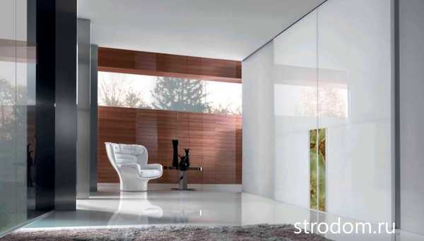 Раздвижные двери из массива дерева смотрятся роскошно и благородно. Стоит присмотреться к решениям Pavilion Parete Continuum марки Tre-P & Tre-Piu. Какую бы модель вы ни выбрали, помните: дерево — очень чувствительный материал. Чтобы оно не рассохлось, надо поддерживать постоянную температуру и влажность воздуха.