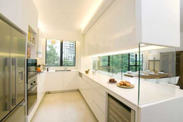 Стекло при всех его плюсах — довольно агрессивный материал (всегда есть мысль, что оно рано или поздно может разбиться), к тому же его надо постоянно чистить. Поэтому если использовать стекло в интерьере, то небольшими вкраплениями и чаще всего матовое — оно не так пачкается. Например, в этом интерьере из стекла сделана только декоративная перегородка, разделяющая кухню и гостиную.