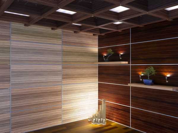 Панели из цельного дерева являются одними из самых дорогих. Их покрывают воском или лаком. Дешевле применять многослойный материал, где лицевой шпон из натурального дерева наклеивается под давлением на основу. Он также покрывается защитными слоями лака и полируется. Широкое применение нашли изделия из деревоотходов.