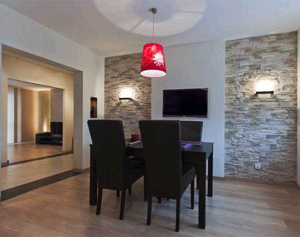 - Самый дешевый вариант очень популярной в последнее время имитации натурального камня.