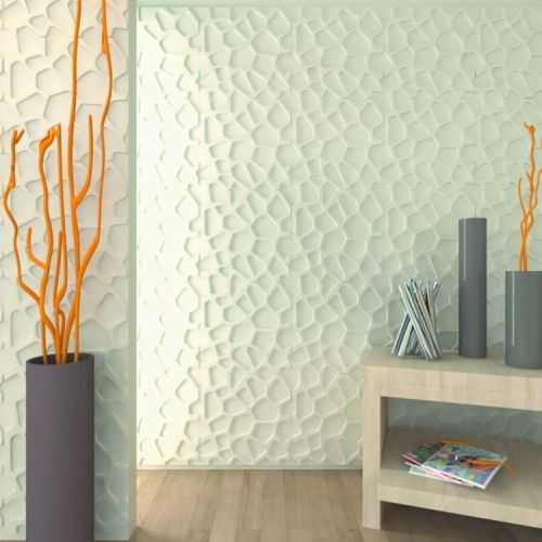 Интересным решением в интерьерах многих комнат является использование 3dпанелей. Фешнпанель и бамбук из которых производится 3д являются скульптурными текстурированными плитами, которые окрашены акриловой краской. Пластиковые 3д детали могут быть как матовыми, так и глянцевыми – зависит от того какой краской их покрасить. Благодаря 3d элементам пространство в помещении становится зрелищным, а эффект, которыйдает3dоблицовка, несравним с другими.