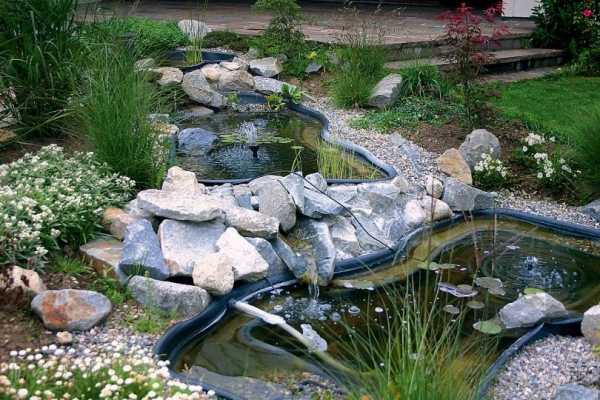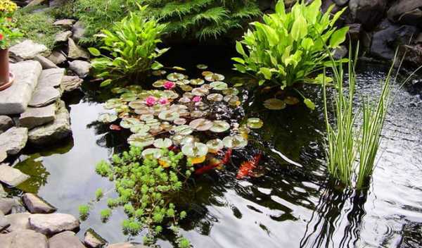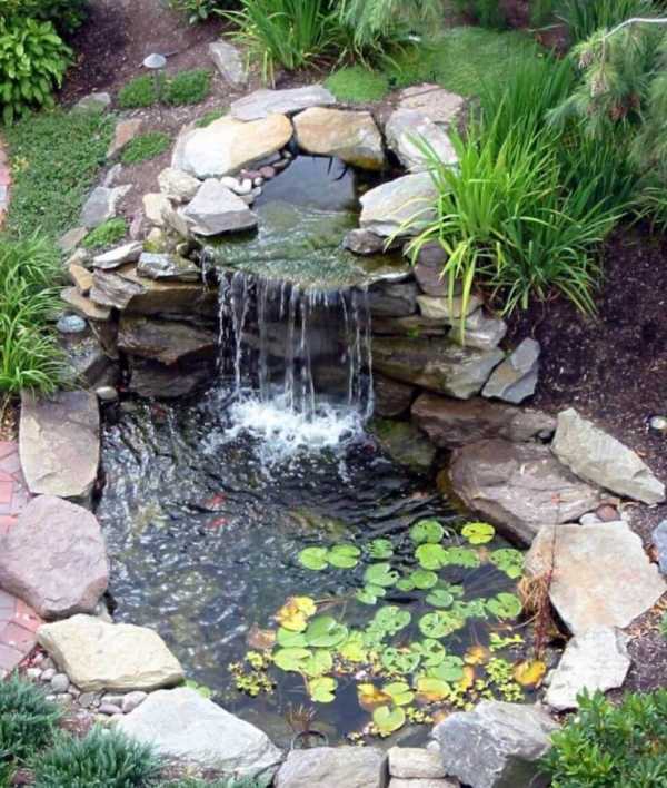 В самом пруду можно устроить фонтан или водопад — по вкусу. Вариантов оформления множество. Только рыбок в таких прудах разводить нельзя (поскольку они промерзают зимой), растения высаживаются только однолетние.