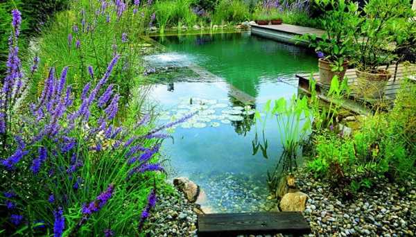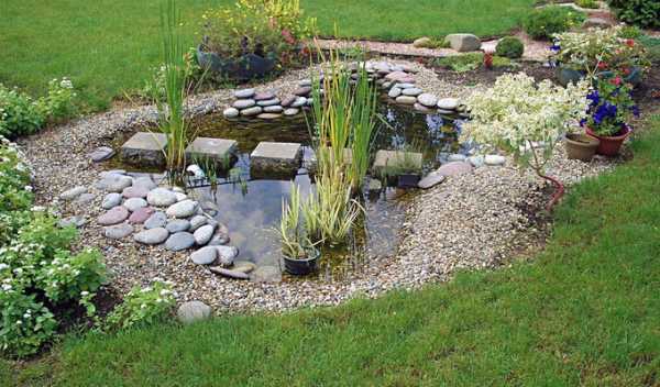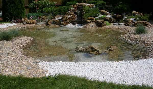 Вдоль изогнутой береговой линии таких водоемов высаживаются водные растения, пологий спуск оформляется галечником или булыжником небольшого размера. Таким образом, водоем практически полностью имитирует естественный пруд. Главное — правильно его оформить.