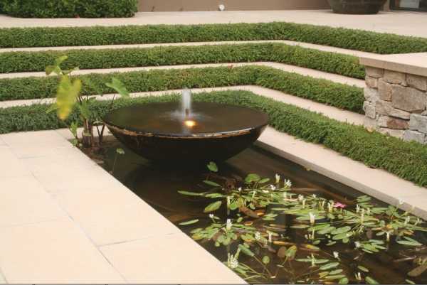 Если водоем располагают на участке, где все выполнено в классическом стиле, господствуют прямые линии, то обустраивают пруд правильной формы. Зачастую, это основа под фонтан, который является центром экспозиции.
