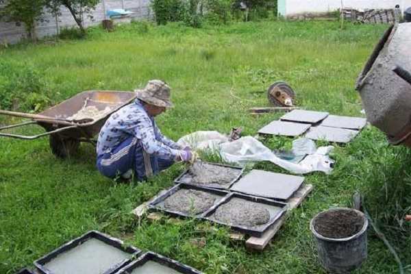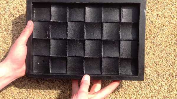 Как только состав застынет, опалубку можно разбирать. После этого снимается изготовленная формочка. При качественном присоединении образцов к основанию они останутся на месте. В противном случае они могут оказаться в шаблоне. В таком случае надо аккуратно выдавить плитки.