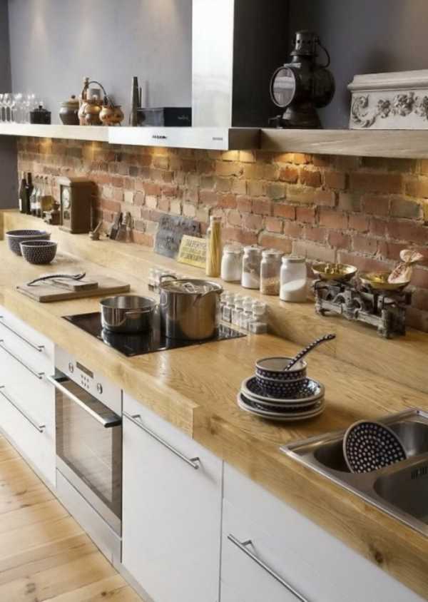 Кирпичные элементы впишутся в любой стиль вашей кухни — от Прованса до глэм-рока. Кроме того, вам не нужно будет подбирать плитку по цвету и стилю — просто используйте кирпич, получится красиво и функционально.