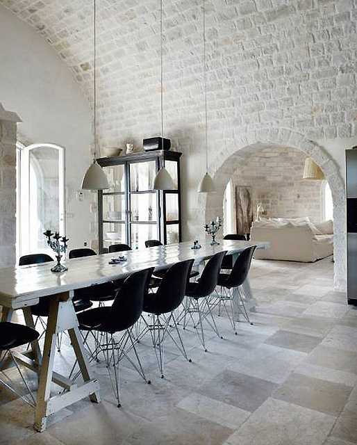 Промышленные стили, ставшие популярными в начале прошлого века, привнесли в дизайн помещений свои правила и идеи. То, что раньше считалось исключительно достоянием заводских интерьеров, появилось в обычных квартирах и домах: тяжелые балки, металлические светильники и кирпичные стены. Впрочем, эти тенденции существовали задолго до промышленной революции, деревенским стилям тоже были присущи внутренние стены из необработанных материалов и другие грубые поверхности. Прованс, кантри и этно наравне с лофтом могут похвастаться грубоватыми фактурами, особенно в пространстве кухни.