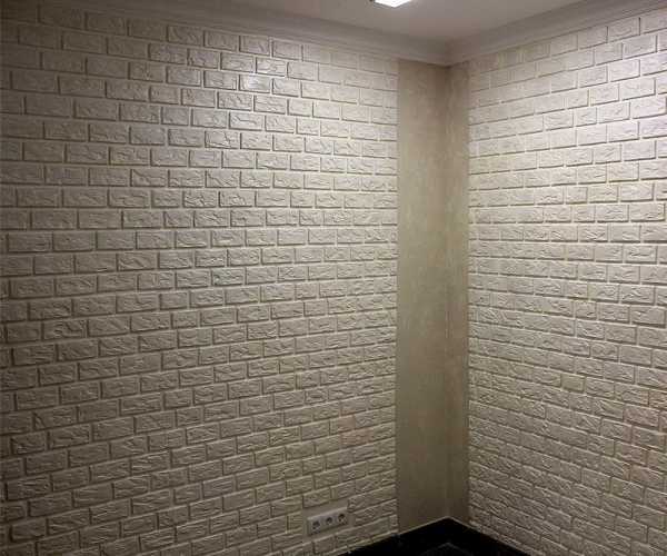 В процессе украшения стен можно использовать декоративный кирпич для отделки размером 150х70х(5-10) мм или 250х65х(5-10) мм, изготовленный из пенопласта. Для этого на листы материала следует обычной гелевой ручкой нанести разметку с учетом возможных отступов на швы.