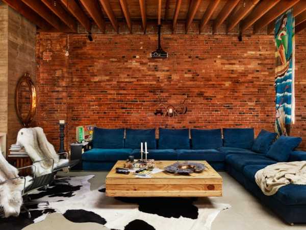 - Лофт. Этот стиль отличается от остальных тем, что практически полностью повторяет интерьер старых фабрик, помещений для складирования и производства. То есть это некий промышленный дизайн. Кирпич может занимать в таком помещение все стены. Он обязательно сочетается с другими элементами – балками, висящими веревками, скрученной проводкой в старой обмотке.