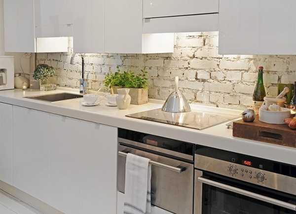 Например, декоративным кирпичом модно выложить стену в кухне у рабочей поверхности. Кирпич светло-серого оттенка отлично гармонирует с белым кухонным гарнитуром. Все смотрится стильно и современно. При необходимости стену можно легко помыть от загрязнений.