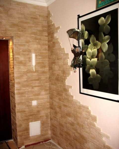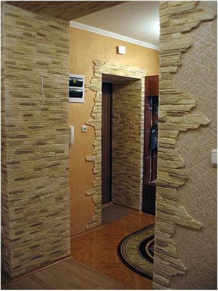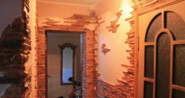Совет! Использовать гипсовый отделочный камень для декорирования прихожих можно в том случае, если после завершения укладки покрыть готовую поверхность лаком или специальной пропиткой.
