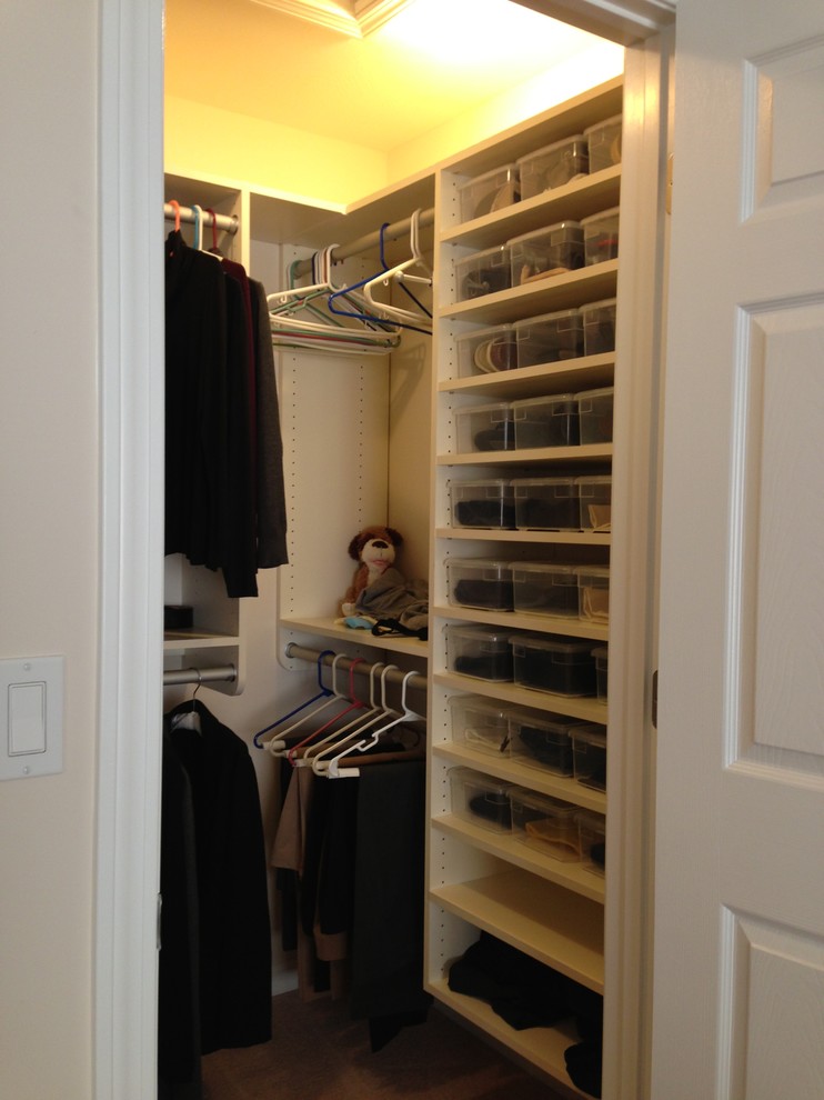 Уютная маленькая гардеробная из кладовки: система хранения и фото