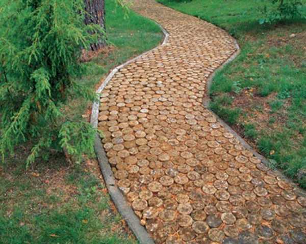 Дорожка из спилов дерева – практичный элемент декора в вашем саду + Видео