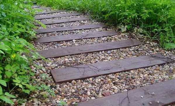 Деревянная дорожка на дачном участке своими руками кладется с использованием различной древесины:
