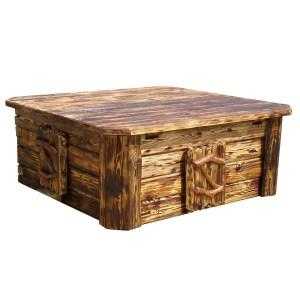Основу крышки составляет деревянный щит, собранный из брусков 4*4 или 5*5 см, как в предыдущем варианте. В его середине делают отверстие для люка размером примерно 50*60 см. Створки люка делают из более тонких брусков (2*2 или 2,5*2,5 см), на шарнирах их прикрепляют к основе. Дерево также шлифуют, покрывают защитными составами, красят. Снаружи к створкам люка прикрепляют ручки.