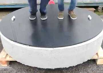 Вокруг делают деревянную опалубку по размеру рамы для нижней части. В пространство между опалубкой и кольцом заливают бетон. Когда он застынет, к неподвижной части с помощью петель крепят крышку. В конце металлические детали и бетонную основу покрывают двумя слоями эмали.
