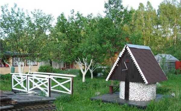 Участок будет выглядеть более элегантно, если источник воды естественно вписывается в общий стиль усадьбы, гармонирует с другими постройками.