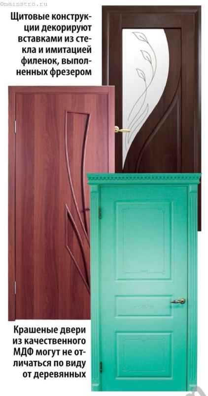 Двери такой категории могут быть ровными и с узорами. Последние смотрятся гораздо богаче, но использование клея при креплении декоративных накладок не позволяет их устанавливать в комнатах с агрессивной средой (балконы, ванны, кухни). Не рекомендованы щитовые модели и в детских, так как украшенные красивыми узорами двери подвержены механическим повреждениям.