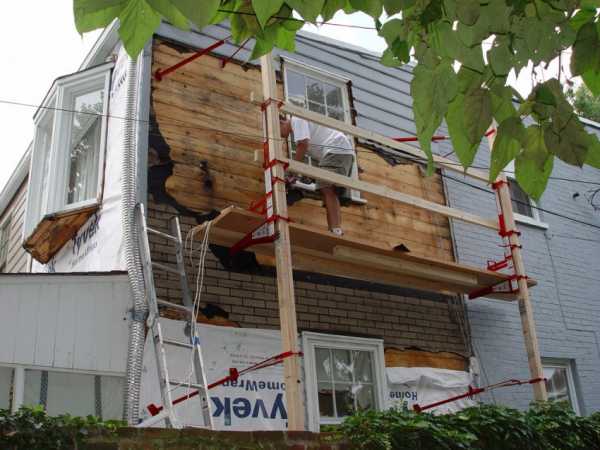 Леса используются при отделке каркасного дома.