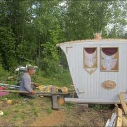 Интересным проектом дачного туалета может стать деревянный дом типа шалаш или туалет-шалаш. Боковыми его стенками является крыша. Соответствия стилю фрамуга для проветривания, которая располагается под крышей выполняется треугольной формы. Сколоченная площадка-пол устанавливается на основание. Далее сооружаются передняя и задняя стенки, которые обшиваются вагонкой и устанавливаются на пол при помощи технологичных досок. Крыша монтируется из досок внахлест, а сверху закрывается коньком. Для сооружения кровли можно использовать профнастил, шифер или оцинкованные гофролисты.