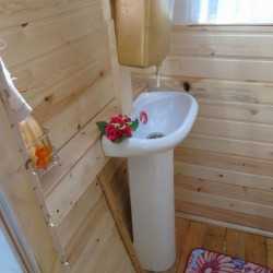 В проекте туалет с душем будут иметь одну общую стену. Результат — экономия строительных материалов. При этом санузел может работать как на основе резервуара со смесью, так и на базе выгребной ямы.