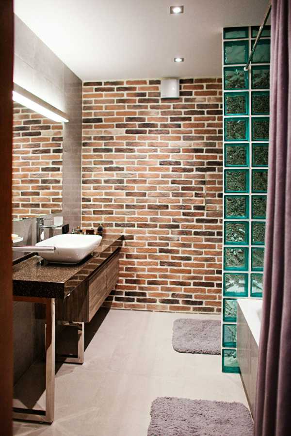 Типичной чертой стиля лофт являются хромированные поверхности. Хорошо смотрятся полочки из стекла и деревянные подставки в виде решеток. Обилие отражающих поверхностей создает оптические эффекты, тем самым полностью компенсируя лаконичность и строгие формы сантехнического оборудования. Оригинальное решение – кладка из кирпича в интерьере.