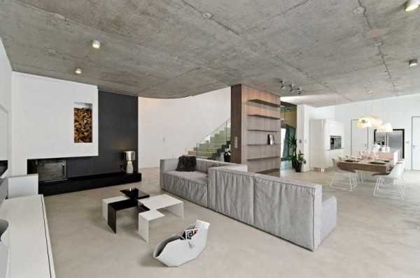 Лестница. При наличии высоких потолков, обустройство второго этажа – вопрос времени. Тщательно выбирайте лестницу. Отличный вариант – винтовая, из кованого металла. Монолитный бетон будет смотреться более громоздко.
