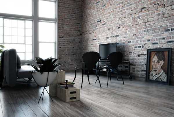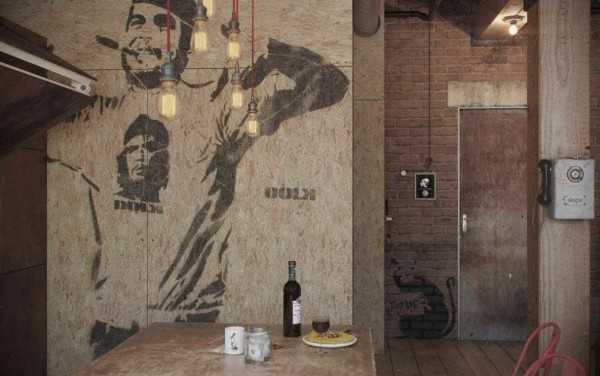 - Пол. Чаще всего это бетон либо необработанные деревянные доски. Можно обойтись обычным ламинатом или плиткой с рисунком-имитацией.