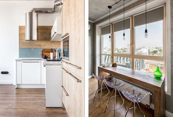 Можно выполнить качественное зонирование, и в столовой зоне воплотить свои дизайнерские фантазии. Здесь допустимо присутствие стекла, металла, пластика. Для контраста добавьте парочку аксессуаров ручной работы или старинный стол.