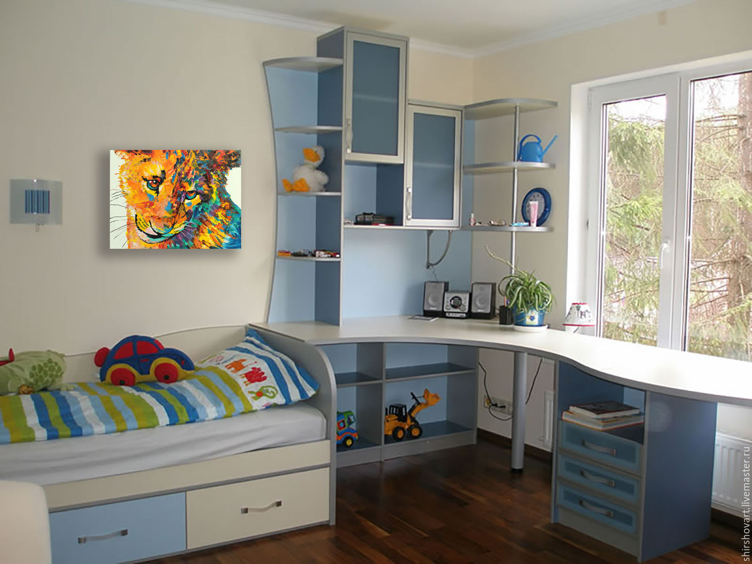 Такое расположение актуально для квартир и домов, которые находятся на северной стороне, где свет практически не попадает в помещение. Детский письменный стол тем более лучше разместить возле окна. Так он займет меньше места и останется пространство для игр и хобби.