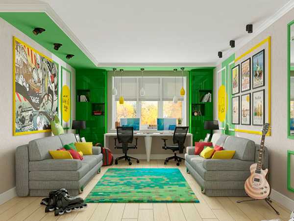 - для шустрых парней подойдут более холодные тона, такие как зеленый, металлический и голубой. Благодаря таким сочетаниям, они будут более спокойными и уравновешенными. Интересным считается стиль хай-тек, позволяющий сделать обстановку интересной и современной.