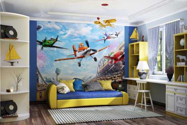Дизайн детской комнаты для мальчика 12 кв м, трех-пятилетний мальчик захочет быть окруженным самолетами или кораблями, девочка – «смешариками» или Барби. Именно в этот момент и стоит озаботиться декором.