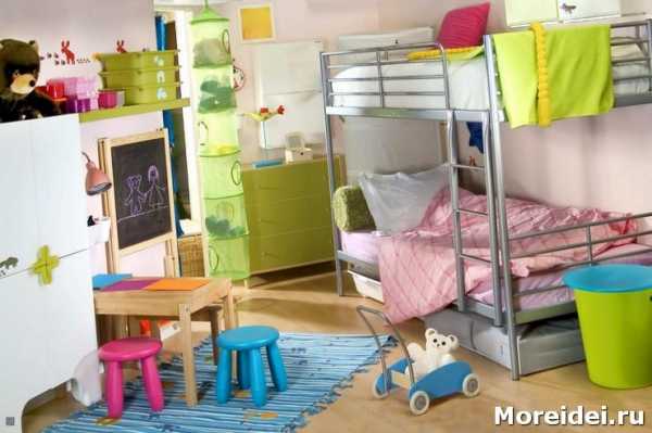 Если мальчики и девочки уже ходят в школу, то их спальные места необходимо расположить подальше друг от друга или, по крайней мере, отгородить стеллажами или ширмами. Так дети будут чувствовать себя более комфортно.