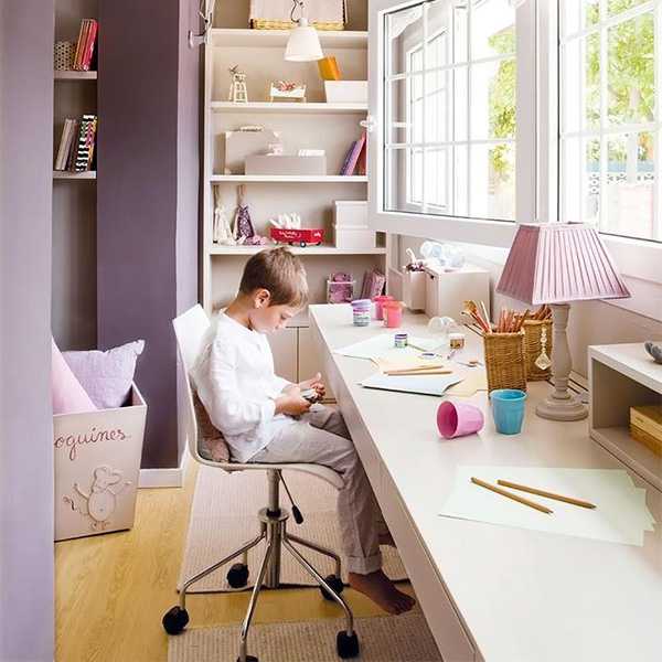 ΠΠ½ΠΎ Π°ΠΊΡΡΠ°Π»ΡΠ½ΠΎ Π² ΠΊΠΎΠΌΠ½Π°ΡΠ΅ ΡΠΊΠΎΠ»ΡΠ½ΠΈΠΊΠ°. ΠΡΠΎΡ Π²Π°ΡΠΈΠ°Π½Ρ ΠΏΠΎΡΡΠ΅Π±ΡΠ΅Ρ Π΄Π΅ΠΌΠΎΠ½ΡΠ°ΠΆΠ° ΠΎΠΊΠΎΠ½Π½ΠΎΠ³ΠΎ Π±Π»ΠΎΠΊΠ° Ρ ΡΠΎΡ ΡΠ°Π½Π΅Π½ΠΈΠ΅ΠΌ ΡΡΠ°ΡΡΠΊΠ° ΡΡΠ΅Π½Ρ ΠΏΠΎΠ» ΠΏΠΎΠ΄ΠΎΠΊΠΎΠ½Π½ΠΈΠΊΠΎΠΌ. Π Π΄Π°Π½Π½ΠΎΠΉ Π·ΠΎΠ½Π΅ Π±ΡΠ΄Π΅Ρ ΠΎΠ±ΡΡΡΡΠΎΠ΅Π½ ΠΊΠ½ΠΈΠΆΠ½ΡΠΉ ΡΡΠ΅Π»Π»Π°ΠΆ. Π Π΄Π΅ΠΊΠΎΡΠ΅ Π½ΠΈΠΊΠ°ΠΊΠΈΡ ΡΡΠΊΠΈΡ ΠΊΡΠ°ΡΠΎΠΊ. ΠΡΠ΅ ΡΠΏΠΎΠΊΠΎΠΉΠ½ΠΎ ΠΈ Π½Π΅ΠΉΡΡΠ°Π»ΡΠ½ΠΎ. Π Π΅Π±Π΅Π½ΠΎΠΊ Π΄ΠΎΠ»ΠΆΠ΅Π½ Π½Π°ΡΡΡΠΎΠΈΡΡΡΡ Π½Π° ΡΠ°Π±ΠΎΡΠΈΠΉ Π»Π°Π΄. Π Π°Π±ΠΎΡΠΈΠΉ ΡΡΠΎΠ» ΡΠ°ΡΠΈΠΎΠ½Π°Π»ΡΠ½ΠΎ ΠΏΡΠΈΠ΄Π²ΠΈΠ½ΡΡΡ ΠΊ ΠΏΡΠ°Π²ΠΎΠΉ ΠΊΠΎΡΠΎΡΠΊΠΎΠΉ ΡΡΠ΅Π½Π΅ Π±Π°Π»ΠΊΠΎΠ½Π°, Π΅ΡΠ»ΠΈ, ΠΊΠΎΠ½Π΅ΡΠ½ΠΎ ΡΠ΅Π±Π΅Π½ΠΎΠΊ Π½Π΅ Π»Π΅Π²ΡΠ°. Π‘ΡΠ΄Π° ΠΆΠ΅ ΠΌΠΎΠΆΠ½ΠΎ Π²ΡΠ½Π΅ΡΡΠΈ ΠΊΠΎΠΌΠΏΡΡΡΠ΅ΡΠ½ΡΠΉ ΡΠ³ΠΎΠ»ΠΎΠΊ.