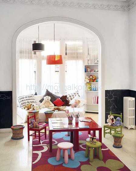 ΠΡΡΡ ΠΈΠ½ΡΠ΅ΡΠ΅ΡΠ½ΡΠ΅ Π΄ΠΈΠ·Π°ΠΉΠ½-ΠΏΡΠΎΠ΅ΠΊΡΡ ΠΈΠ³ΡΠΎΠ²ΡΡ ΠΊΠΎΠΌΠ½Π°Ρ, ΠΎΠ±ΡΠ΅Π΄ΠΈΠ½Π΅Π½Π½ΡΡ Ρ Π±Π°Π»ΠΊΠΎΠ½ΠΎΠΌ/Π»ΠΎΠ΄ΠΆΠΈΠ΅ΠΉ. ΠΡΠΎΡΠΌΠΈΡΡ ΡΡΠ΅Π½Ρ ΠΌΠΎΠΆΠ½ΠΎ Π² ΡΡΠΊΠΈΠ΅, Π²Π΅ΡΠ΅Π»ΡΠ΅ ΡΠ²Π΅ΡΠ°, ΠΎΡΠΎΠ±Π΅Π½Π½ΠΎ Π΄Π»Ρ ΡΠΏΠΎΠΊΠΎΠΉΠ½ΡΡ , ΡΠ»Π΅Π³ΠΌΠ°ΡΠΈΡΠ½ΡΡ ΠΌΠ°Π»ΡΡΠ΅ΠΉ. ΠΡΠ»ΠΈ ΡΠ΅Π±Π΅Π½ΠΎΠΊ ΠΎΡΠ΅Π½Ρ Π°ΠΊΡΠΈΠ²Π΅Π½ ΠΈ ΠΏΠΎΠ΄Π²ΠΈΠΆΠ΅Π½, ΠΈΡΠΏΠΎΠ»ΡΠ·ΡΠΉΡΠ΅ Π±ΠΎΠ»ΡΡΠ΅ ΠΏΠ°ΡΡΠ΅Π»ΡΠ½ΡΡ ΡΠ²Π΅ΡΠ»ΡΡ ΠΎΡΡΠ΅Π½ΠΊΠΎΠ². ΠΠ³ΡΠΎΠ²ΡΡ Π·ΠΎΠ½Ρ Π·Π°ΡΡΠ΅Π»ΠΈΡΠ΅ ΠΊΠΎΠ²ΡΠΎΠ»ΠΈΠ½ΠΎΠΌ β Π·Π΄Π΅ΡΡ ΡΠ΅Π±Π΅Π½ΠΎΠΊ Π±ΡΠ΄Π΅Ρ ΠΈΠ³ΡΠ°ΡΡ.
