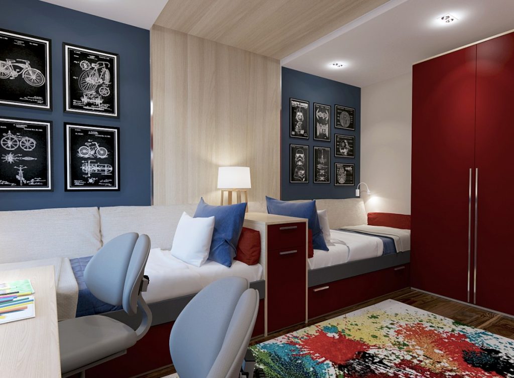 Когда вы заметите, что вместо игрушек и мультяшных героев ваш сын начинает хвастаться спортивными наградами и школьными грамотами, у него начинают появляться новые увлечения, самое время сменить обстановку в детской комнате. Как правило, в возрасте 10–13 лет у мальчиков просыпается желание узнавать что-то новое. У них меняются увлечения, появляется какая-то серьезность, темы разговоров становятся все более взрослыми — новые интересы наверняка найдут воплощение и в интерьере детской.