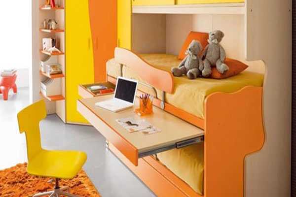 В случае, если пространство вам позволяет, вы можете оборудовать для одного ребенка отдельные кровать и стол, а второму предоставить в пользование трансформер стол/кровать. Такие конструкции необычные и по душе многим детям. Кроме того, их спальное и рабочее место находятся в непосредственной близости друг от друга. В зависимости от темперамента детей вы можете сделать выбор — поставить одну такую кровать или две в комнате. Попробуйте узнать у детей, как им будет удобнее.