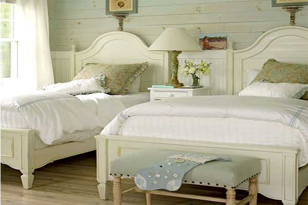 Вариант расставить кровати вдоль одной из стен, голова к голове. Этот случай удобен в удлиненных комнатах. А между кроватями можно сделать перегородку, тем самым разделить комнату на зоны.