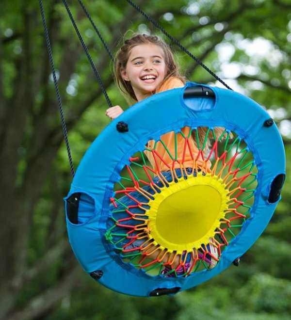 В такой круглой качельке на мягкой подушке, привязанной к основанию, чтобы не «улетела», приятно будет проводить время не только детям, но и взрослым