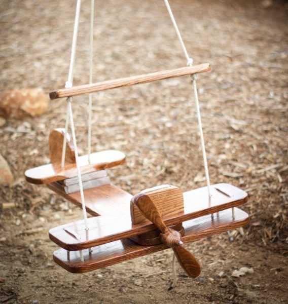 Над такой деревянной качелей-самолетом придется повозиться, но результат того стоит, ваш ребенок будет чувствовать себя настоящим летчиком