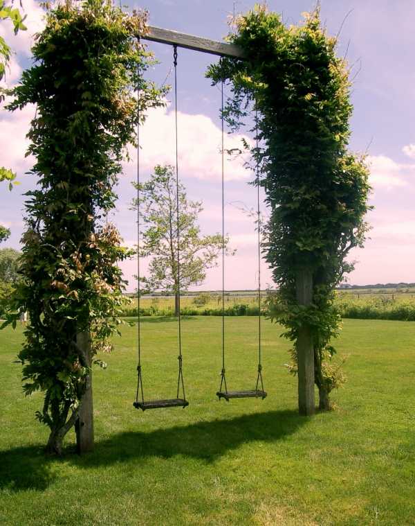 Из-за месторасположения к садовым конструкциям можно отнести и детские качели, отличающиеся большим разнообразием форм и принципом действия и использующиеся не только для отдыха, но и активных игр.