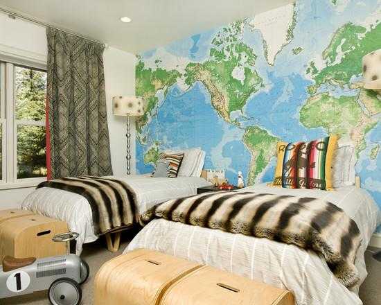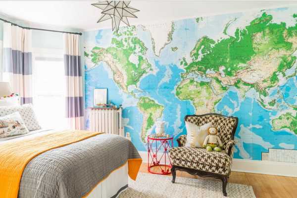 Фотообои с изображением карты мира сделают интерьер комнаты подростка нердинарным