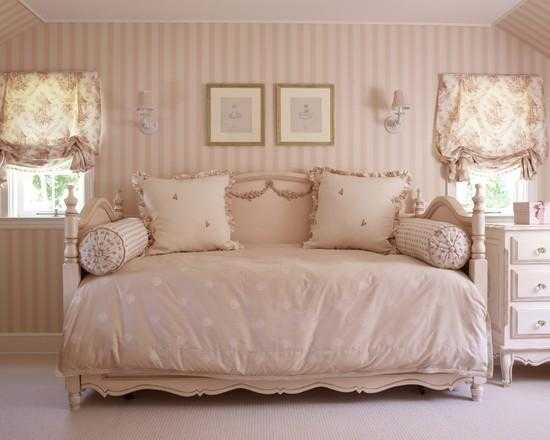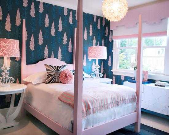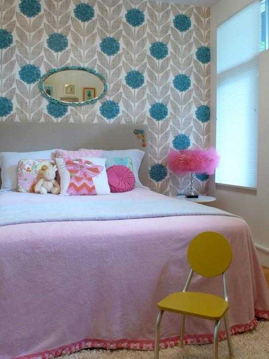 Создать эффектный интерьер в комнате девочки-подростка можно, оклеив одну из стен обоями с классическим орнаментом