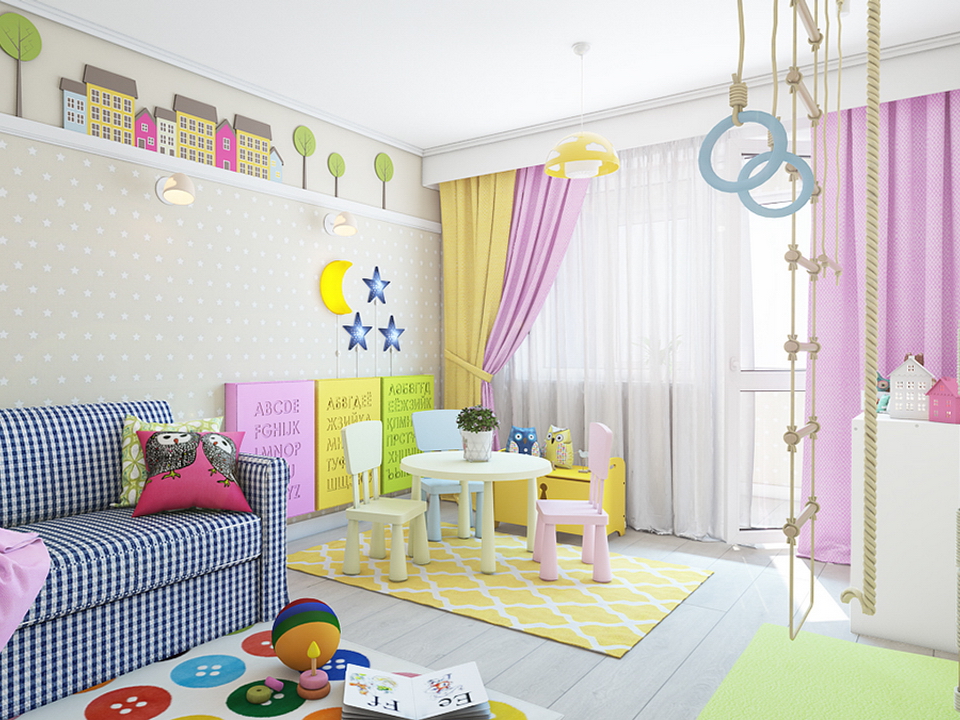 Если же ребенок, напротив, чересчур спокойный, то отделку можно сделать динамичной и яркой, только не вызывающей.