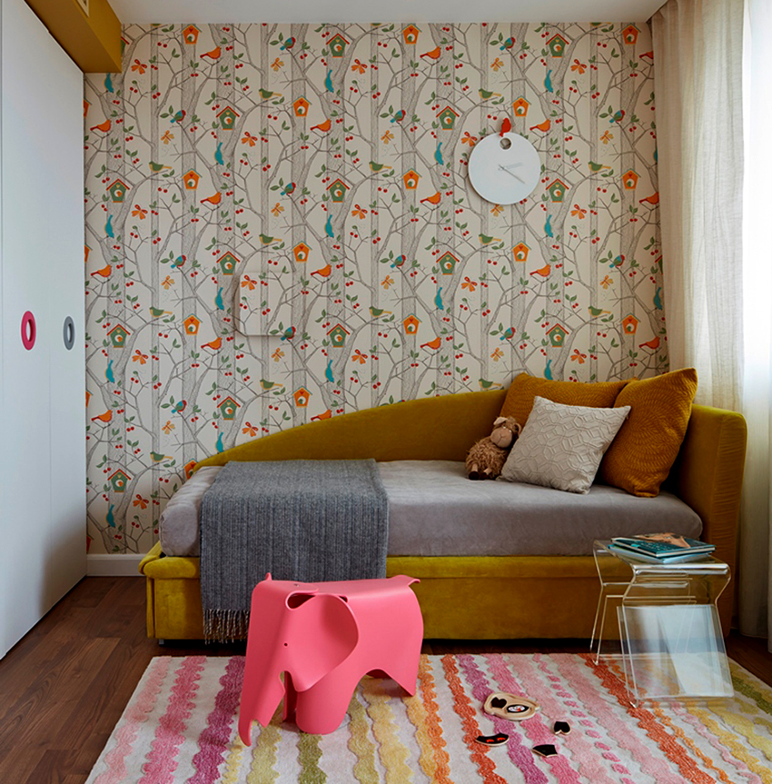 В первом случае придется выбрать нейтральное оформление стен: полоски, геометрические узоры, растительные принты.