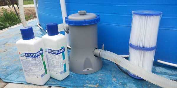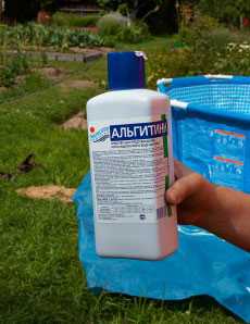 Перед тем как наполнять бассейн водой можно обработать стенки и дно альгитином. Это избавит вас от склизких стен, покрытых микроводорослями.