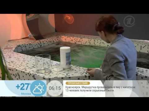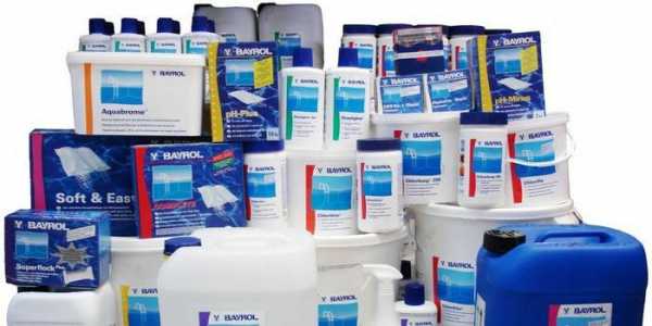 солнцезащитного крема и предотвращают рост водорослей. Химические средства выпускаются в виде таблеток, жидкости или в форме гранул и обязательно должны быть одобрены Министерством охраны окружающей среды. Дезсредства насыпаются в наполненный водой бассейн. После их растворения дно и стенки резервуара очищаются с помощью щетки.